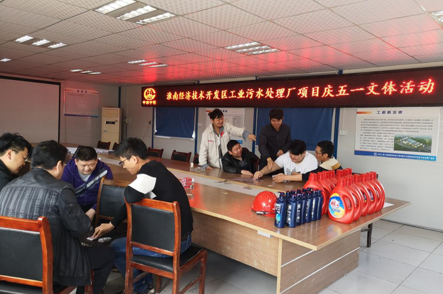 430日上午,淮南經(jīng)濟技術(shù)開發(fā)區(qū)污水處理廠項目經(jīng)理部組織開展了“慶五一”文體趣味活動。項目部在確保生產(chǎn)安全、隊伍維穩(wěn)、施工有序推進(jìn)的同時,組織安排了搶凳子、跳繩、摜蛋等文體活動。                                   (胡玉)